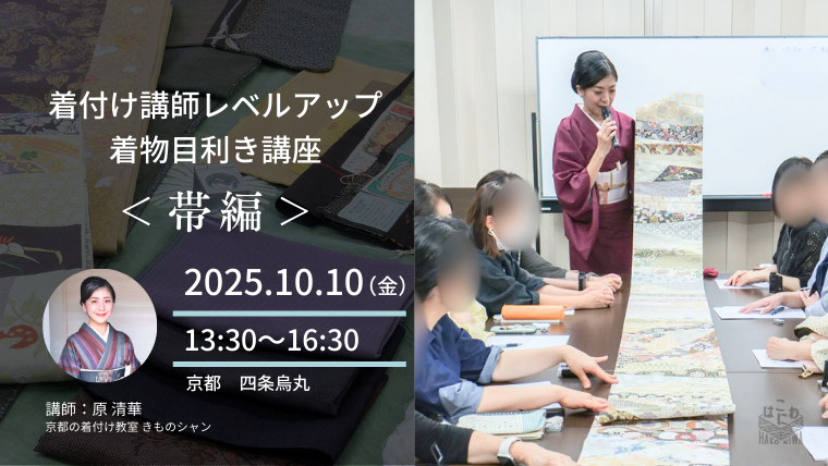 通常の講座は着付け講師の先生方の受講はご遠慮いただいておりますので、気になっていた方はぜひこの機会にご受講ください。